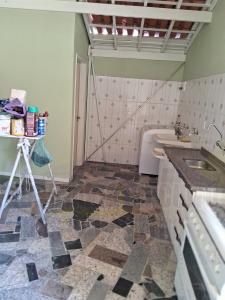 Nível inferior: Lavanderia, 1 cômodo versátil, 1 banheiro e quintal .Esse pavimento encontra-se sem acabamento, oferecendo a oportunidade de personalização conforme sua preferência.